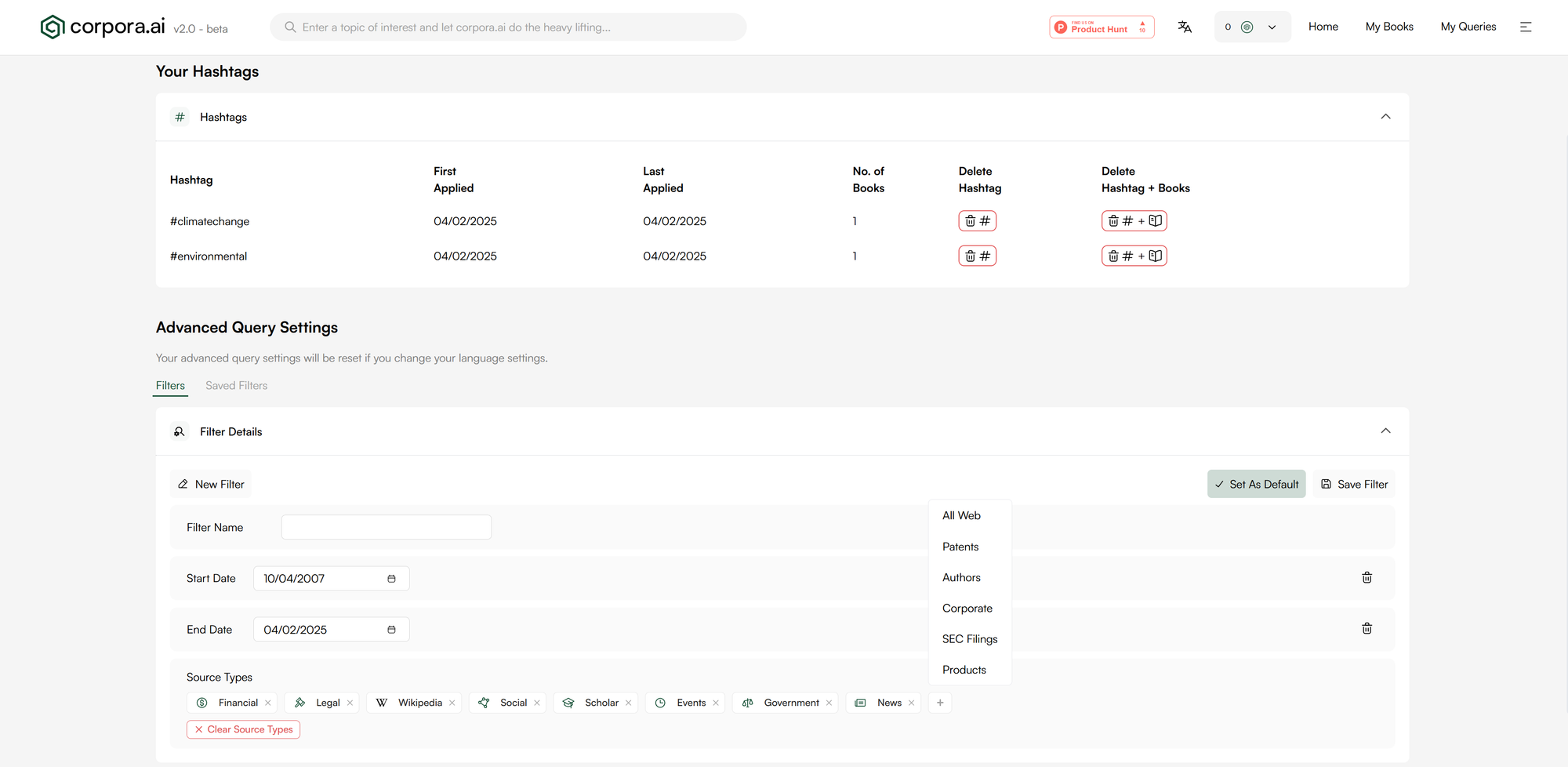 Corpora.ai Prompting Language showed that greater control over research was a necessity. Which is why we have developed Advanced Query Settings.