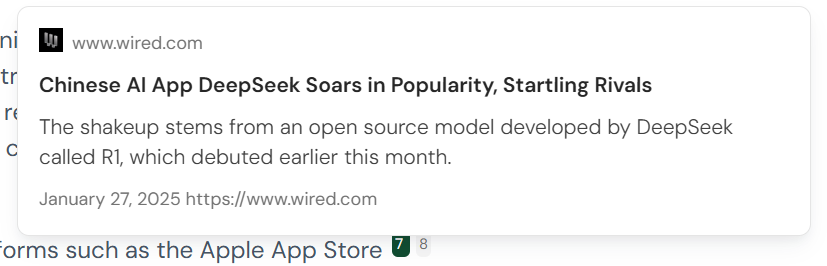 For newly generated content, citations now have a new look and a popover! Why is this so exciting? Well, it saves the user time to check the source of the content - this can streamline the verification of research - it can be used as a filter to determine whether the source content is worth reading - which again, optimizes research for the user.